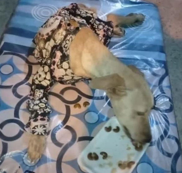 When rescuers finally found Catire, they discovered a dog struggling with extreme hunger, using only his front legs to move around in a desperate search for sustenance.