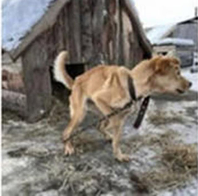 His ribs protruded under his thin, matted fur, and his eyes, once vibrant, appeared dull and lifeless, clouded by hopelessness. Abandoned and forgotten, he was battling the relentless winter alone.